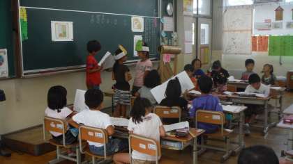 音読げきに向けて,様々な工夫をこらして練習しています。