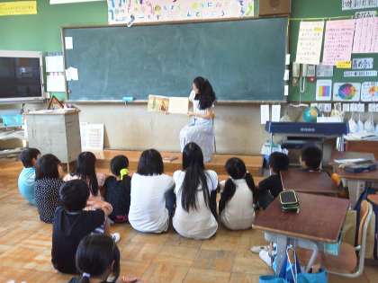 今日の朝,ボランティアの方に読み聞かせをしていただきました。