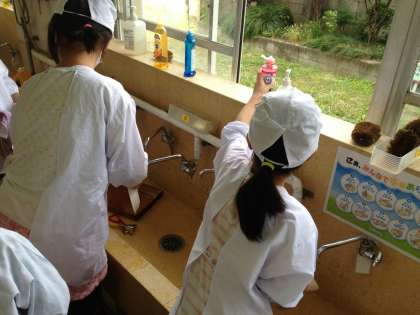 カレーを食べた後は各自で食器もていねいに洗いました。