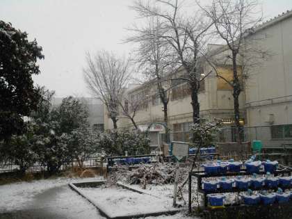 生活科の学習では,季節に合わせて楽しく遊んだり,季節の良さを見つけたりしています。今日は,ぼたん雪がふわふわと舞い降り,辺り一面が真っ白な銀世界でした。