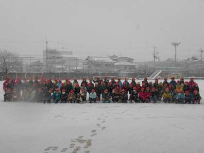 運動場一面が雪に覆われました。めったに積もることのない雪が3・4センチほど積もりました。1年生全員で雪をたっぷり堪能しながら遊びました。