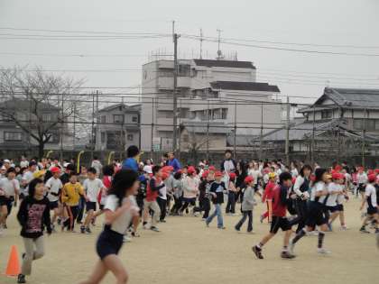 本校の冬の恒例行事の『亀の子マラソン』に向けて,中間休みを利用して全校児童がマラソンに取り組む「中間マラソン」が,1月12日から始まりました。
