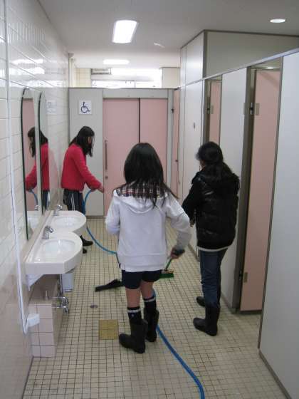 中学年以上の子どもたちが分担を決めて,毎週水曜日にトイレを掃除しています。今日も大変寒い日ではありましたが,長靴をはき,ホースやデッキブラシを手にもって,一生懸命に取り組んでいました。これからも頑張ります。