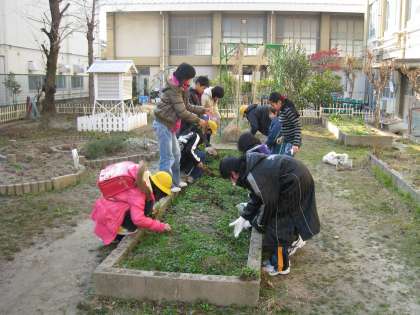 まず紹介するのは,『園芸委員会』です。この日は,花壇の土を耕して,次に苗を植える準備を進めました。残っていたチンゲン菜は,飼っているうさぎたちの餌にと,飼育小屋へ運んでくれました。うさぎたちも大喜びで食べていましたよ。
