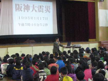 おかげさまで,児童は登校班の集合場所から学校まで,安全に集団避難登校ができ,その後,体育館で安全主任や校長先生の地震や自然災害の話もしっかり聞けました。