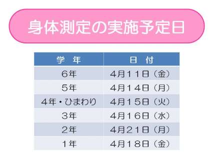 今月の身体測定は,身長・体重・座高の三測定です。