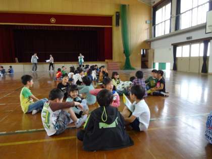 1年生と2年生が一緒に5〜6人のグループになって,自己紹介をしたり,しりとりで遊んだりしました。