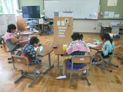 初めにどうしてむし歯になるのかを学習し,プラークテストで汚れの残りやすいところを確認しました。“食べたらみがく”を実践し,歯を大切にしていきたいものです。