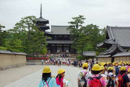 法隆寺といえば,日本で初の世界文化遺産に認定された寺院です。7世紀に建立され,世界で最古の木造建築と言われています。多くの学校が,見学に訪れています。何度訪れても,感動しますね。私はすごくテンションがあがっていましたが,子どもたちはどうだったのでしょうか。