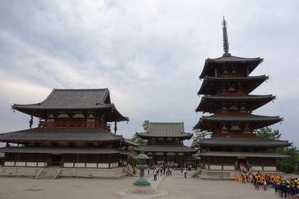 法隆寺の伽藍,エンタシスの柱状回廊,建造物の巨大さ,そして歴史の重み・・・。マニアックな人にはたまらない法隆寺です。写真の伽藍配置を見て,ため息をつけたとしたら,その人は相当なマニアだとお見受けします。