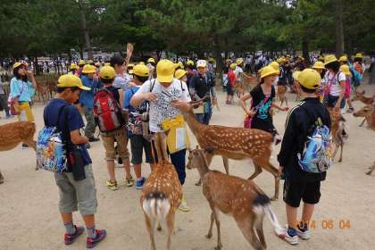 子どもたちは,鹿が寄ってくるのが怖いのか,逃げ惑っていました。しばらくすると,慣れてきたのか,寄ってたかって鹿を撫でまくっていました。つれなくされたり,しつこく撫ぜられたりと,鹿の気持ちも複雑だったにちがいありません。