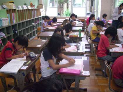 1回目の「漢字検定にチャレンジ」です。初めて取り組む1年生は真剣な様子でテキストの学習を進めていました。まだ漢字を習っていません。ひらがなの学習からスタートです。2年生以上も来年1月31日の本番に向けて真剣に取り組んでいました。