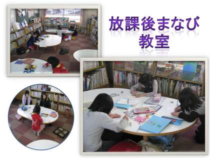 本校の放課後まなび教室では,元教員の皆さん,地域の皆さんがスタッフとして,連携しながら指導にあたって頂いています。まず宿題に取り組み,それを終えたら、用意された学習プリントに取り組んだり,読書をしたり,あるいは図書による調べ学習をしたりしています。