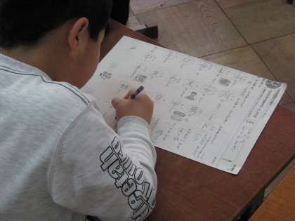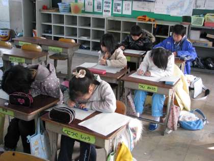 「学習の時間」では,子ども一人一人がプリントを使って熱心に学習していますよ。まずその様子をご覧ください。土曜学習の中の「学習の時間」です。みんな頑張っています。