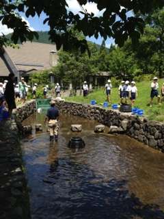 次の野外炊事で,とった魚をさばき,焼いて食べます。