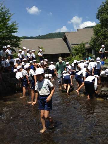 魚つかみをしました。すぐにコツをつかんで楽々つかめる子や魚に楽々逃げられ悪戦苦闘している子様々です。でも,初めての体験なのでとてもおもしろく,キャーキャー言いながら活動しました。