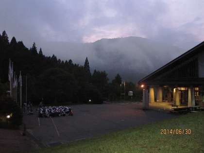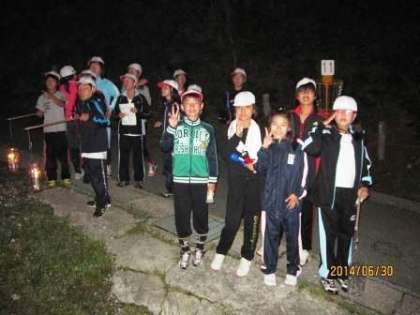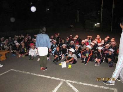 夕食を食べた後は,軽くナイトハイクです。所内を回ります。昼間のオリエンテーリングと何が違うのかというと,暗くなってから回るという違いがあります。子どもたちも,暗い中を歩き回るのは怖いと思うのですが,一人ぼっちで暗闇で待っている私たちはもっと怖いのです。誰かに見つめられているような・・・なんてことを考えると,しょっちゅう後ろを振り向かなければなりません。