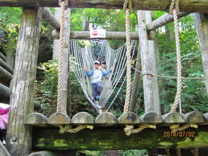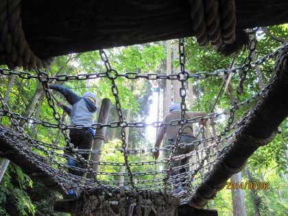 ここのアスレチックは,高低差の激しいことが特徴です。要するに,登ったり下りたりしなくてはいけないのです。