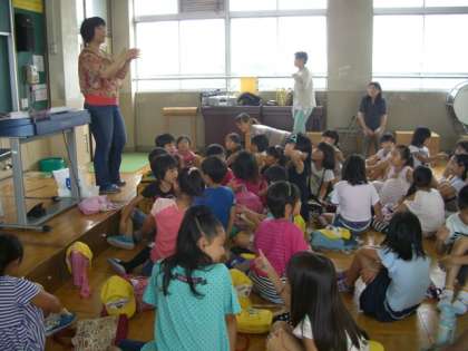 今回は2年から4年生児童の参加です。42人もの参加がありました。英語を聞いたり話したり,英語を使ってゲームをしたりと楽しい活動をしました。