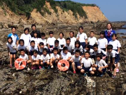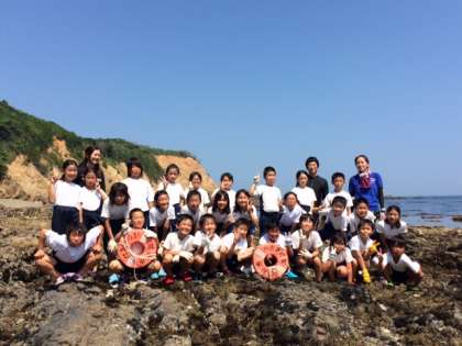 田尻の浜での磯観察を楽しんでいます。とてもいいお天気です。とても暑いです。