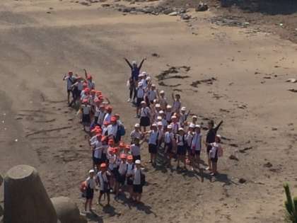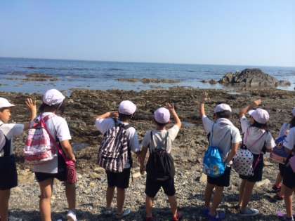 磯観察が終わりました。1時間近く楽しみました。田尻の浜、さようなら〜!
