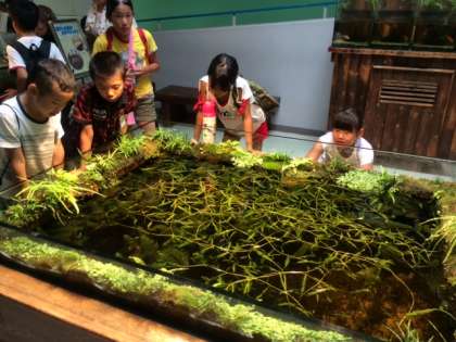 アシカショーやセイウチ笑(ショー)を楽しんでいます。12時30分になったら水族館内のレストランで昼食です。それまでグループで楽しみます。