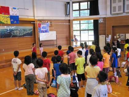 みさきの家の最初の活動は,入所式です。司会の子どもたちがしっかりと挨拶をしてくれました。気楽に入所式の様子を見ていると,突然「校長先生のお話」と言われたのですが,お話をするなんて初耳だったので,えらくあわててしまいました。担任のT先生の機転で,うまく挨拶を飛ばしてもらって,無事に終了。所員の方に,「焦ってはりましたなー」と慰めの言葉をいただきました。