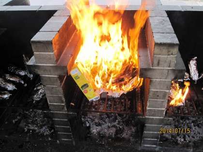火をつけますと,山の家でも話題になっていた,燃えやすいパックとそうでないパックがあることを確信しました。真ん中の写真では,間違いなくパンが焦げているでしょう。下の写真位の燃え方が,GOODです。