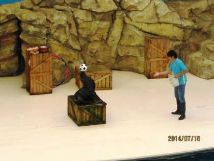 いち早く,アシカショウの舞台へ着いて,子どもたちの来るのを待っていました。アシカってどうしてあんなことができるのでしょうね。お利口さんです。アシカの可愛いしぐさに,観客からは拍手喝采。最後にすごいジャンプを見せてくれました。