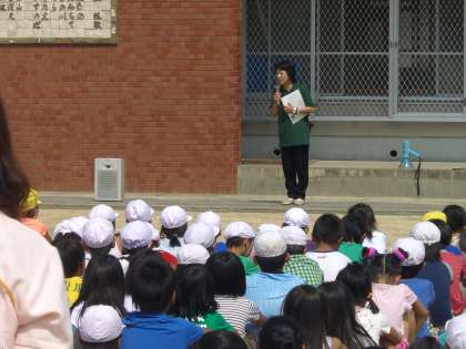 避難訓練の後に,伏見警察署スクールサポーターの方から話を聞き,「いかのおすし」「おはしもて」の言葉を意識して行動することの大切さを学びました。