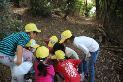 お昼ごはんを食べた後は,どんぐり拾いをしました。