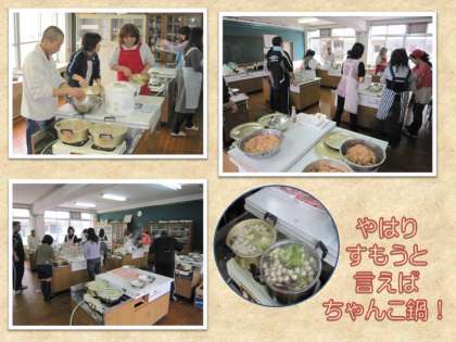「すもうと言えばちゃんこ鍋!」最後には,保護者の皆様がつくってくださった『特製ちゃんこ鍋』が振る舞われ,みんな,とても美味しく食べさせて頂きました。