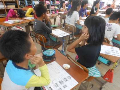食べ物をかむことの大切さについて,栄養教諭の八田先生に教えていただきました。