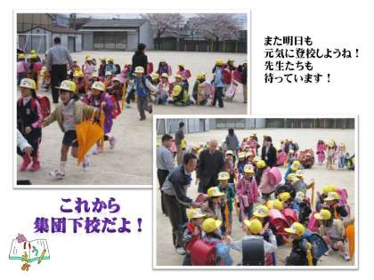 下校は,同じ方向のお友だちが集まっての集団下校でした。今年度は児童館に通うお友だちが大変多いですね。今日も児童館の先生方がお迎えに来てくださいました。お世話になります。有難うございます。