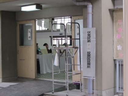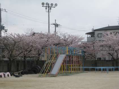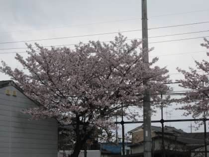 学校の運動場の桜もまだまだ花をつけています。今日は京都府知事選挙の投票日。本校の体育館も投票所となっております。投票をして頂いた後は,どうぞ「小さなお花見」を楽しんでからお帰りください。