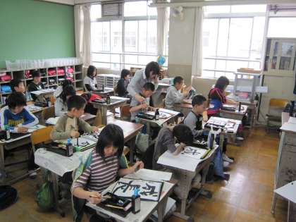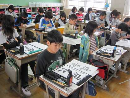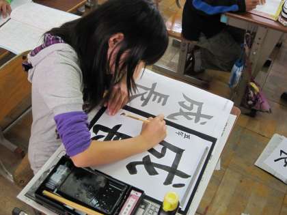 毛筆習字の学習中です