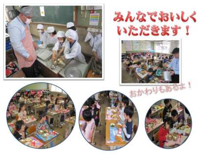 無事に準備が出来て,みんなで「いただきます!」家での食事もいいけれど,学校でみんな一緒に給食を食べるのもおいしいですね。今日の献立は何だったか,どんな味だったのか,家に帰ったらお話してあげてくださいね。