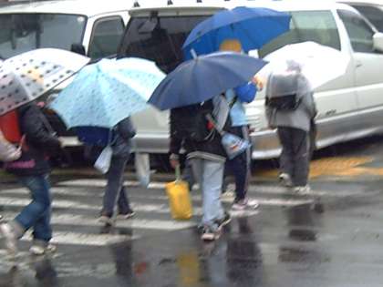 あいにくの雨でしたが、みんなきちんと並んで下校しました。登校班長を先頭に、安全に気をつけて集団下校しました。