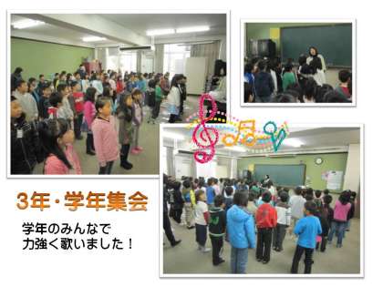 新年度が始まり,まだ十日ほどしか経っていないのですが,下鳥羽の子どもたちは,新しい学級・学年の集団の中で一生懸命に活動に取り組んでいます。学級だけではなく,学年全体が一つにまとまって活動することで,連帯感あふれる仲間づくりを進めている姿をよく見かけます。3年生の学年集会でも,子どもたちと担任教員の熱気にあふれた様子を伺うことができました。