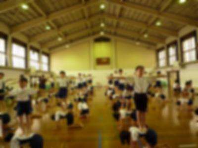雨で運動場が使えなかったので,体育館で組体操の練習をしました。