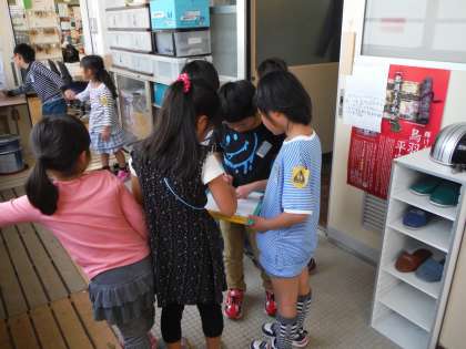 1年生を連れて,学校案内をしました。