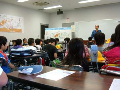 2つのグループのうち,ひとつは部屋で南部クリーンセンターの設備やごみ処理のお話を聞きました。ていねいにお話していただいただけでなく,質問に答えていただいたり,とても勉強になりました。