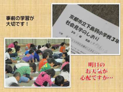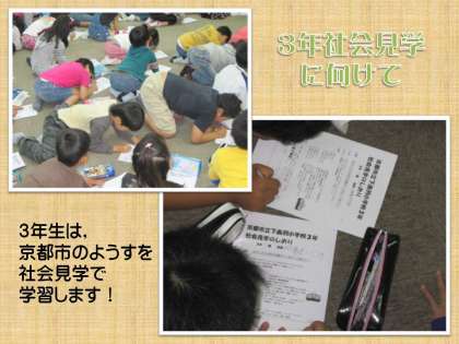 3年生が,社会見学に行く前の事前学習を実施していました。電車内や歩行中のマナーはもちろん,準備するものや,何より社会科学習の内容について,学年みんなで確かめる時間です。社会科でどんなことを発見してくれるのでしょうか。