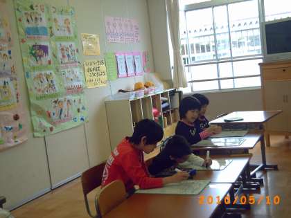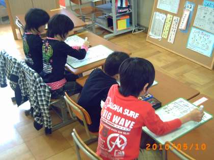 今日の一日,「何をがんばろうかな。」「どんなことに気をつけようかな。」と,自分を見つめ直し,朝の会で何を目標にするのかを考えています。決めた目標を発表し,ホワイトボードに書いて掲示もしています。