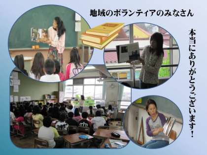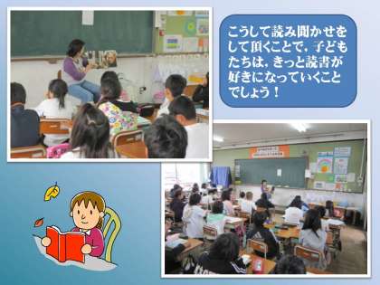 本校では,読み聞かせボランティアの皆さんに活躍して頂いています。その活動の様子は,本日の他のページでも紹介してもらっています。そちらもご覧ください。