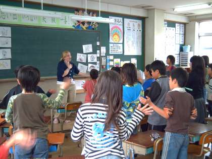 英語の時間が大好きという児童がたくさんいて、授業は大盛り上がり。
