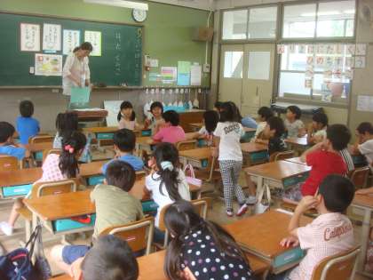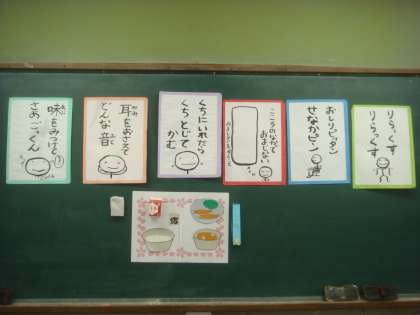 栄養教諭の八田先生に食事の仕方を教わりました。