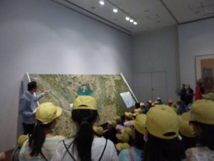 京セラ美術館にて「鳥羽離宮と平安の栄華」という特別展が行われており,平安時代について歴史学習を終えた子どもたちは興味をもって話を聞いたり,展示物を見学したりしていました。