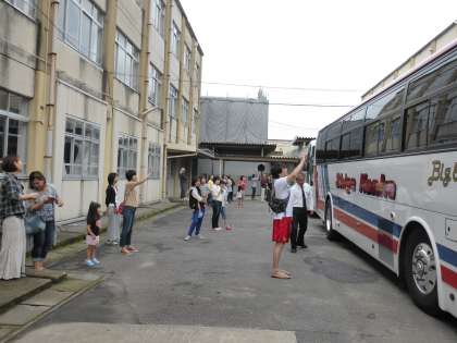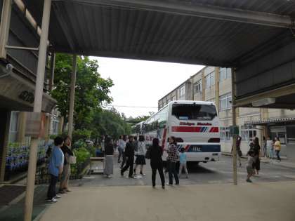 出発式を終え,バスに乗り込みます。さあ,いよいよ出発の時が近づいてきましたよ。