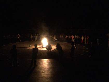 暗くて様子がよくわかりませんが・・・2日目の夜,キャンプファイアでの火の神,火のこの入場の様子です。